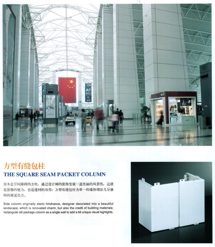 方形有縫包柱鋁單板,原本是空間妨礙的方柱,經(jīng)過設(shè)計師的裝修讓它變成了一道美麗的風景線,這就是方形包柱鋁單板的魅力,它能廣泛的應用在加油站、體育館、地鐵高鐵站等,增加視覺亮點。